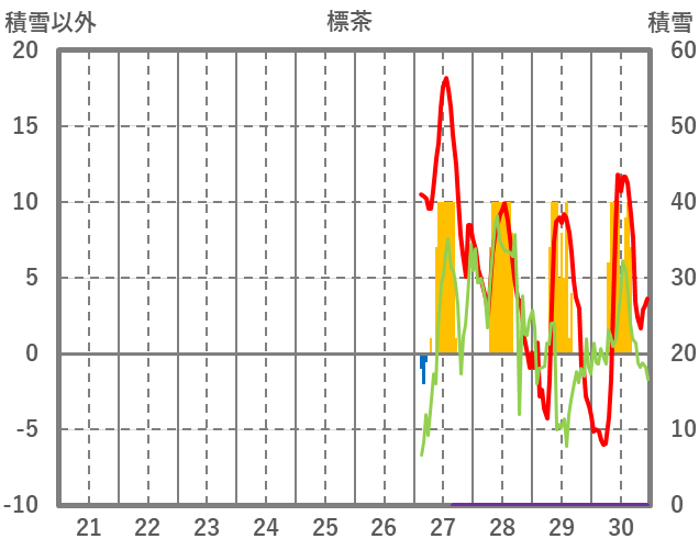 | 日 | 時 | 気温 | 降水 | 風向/風速 | 日照 | 積雪 | 降雪 |