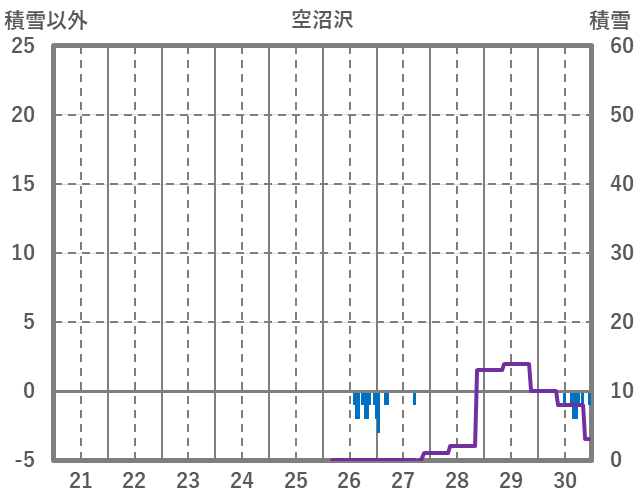 | 日 | 時 | 気温 | 降水 | 風向/風速 | 日照 | 積雪 | 降雪 |