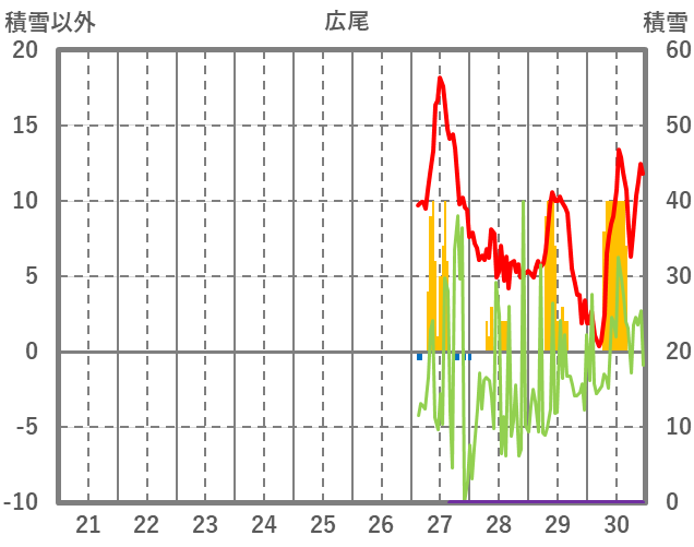 | 日 | 時 | 気温 | 降水 | 風向/風速 | 日照 | 積雪 | 降雪 |
