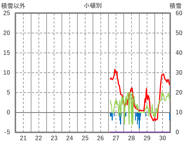 | 日 | 時 | 気温 | 降水 | 風向/風速 | 日照 | 積雪 | 降雪 |