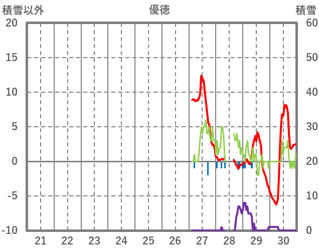 | 日 | 時 | 気温 | 降水 | 風向/風速 | 日照 | 積雪 | 降雪 |