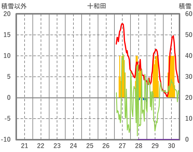 | 日 | 時 | 気温 | 降水 | 風向/風速 | 日照 | 積雪 | 降雪 |