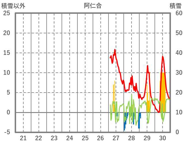 | 日 | 時 | 気温 | 降水 | 風向/風速 | 日照 | 積雪 | 降雪 |