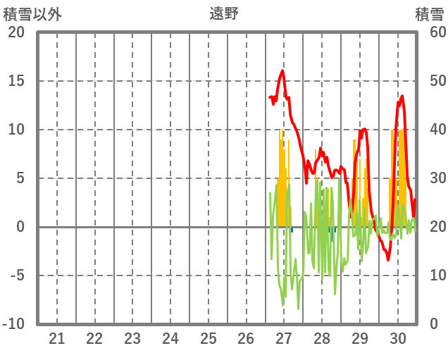 | 日 | 時 | 気温 | 降水 | 風向/風速 | 日照 | 積雪 | 降雪 |