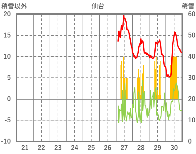 | 日 | 時 | 気温 | 降水 | 風向/風速 | 日照 | 積雪 | 降雪 |