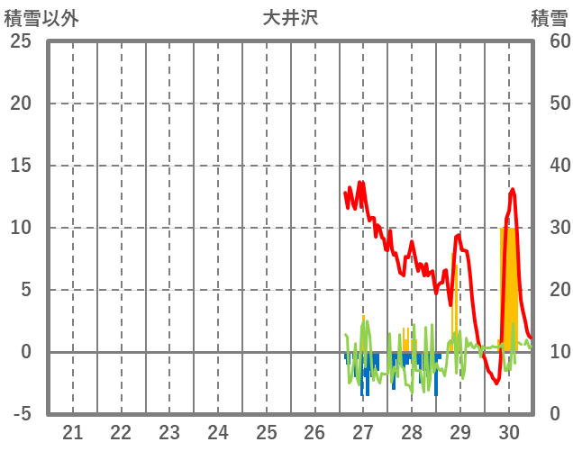 | 日 | 時 | 気温 | 降水 | 風向/風速 | 日照 | 積雪 | 降雪 |