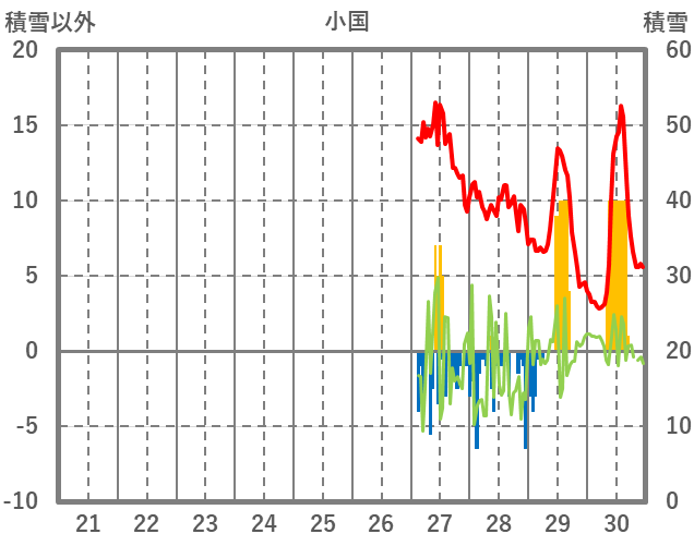 | 日 | 時 | 気温 | 降水 | 風向/風速 | 日照 | 積雪 | 降雪 |