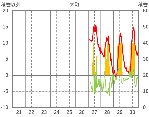 | 日 | 時 | 気温 | 降水 | 風向/風速 | 日照 | 積雪 | 降雪 |