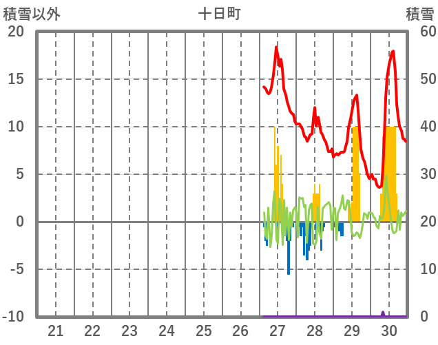 | 日 | 時 | 気温 | 降水 | 風向/風速 | 日照 | 積雪 | 降雪 |