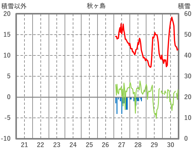 | 日 | 時 | 気温 | 降水 | 風向/風速 | 日照 | 積雪 | 降雪 |