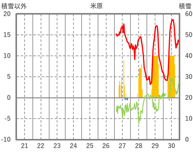 | 日 | 時 | 気温 | 降水 | 風向/風速 | 日照 | 積雪 | 降雪 |