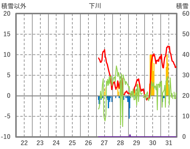 | 日 | 時 | 気温 | 降水 | 風向/風速 | 日照 | 積雪 | 降雪 |