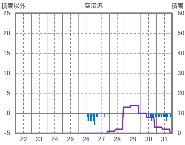 | 日 | 時 | 気温 | 降水 | 風向/風速 | 日照 | 積雪 | 降雪 |