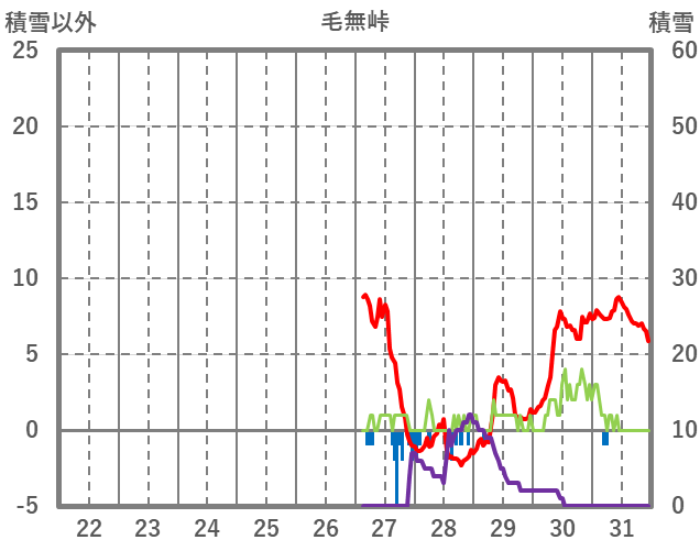 | 日 | 時 | 気温 | 降水 | 風向/風速 | 日照 | 積雪 | 降雪 |