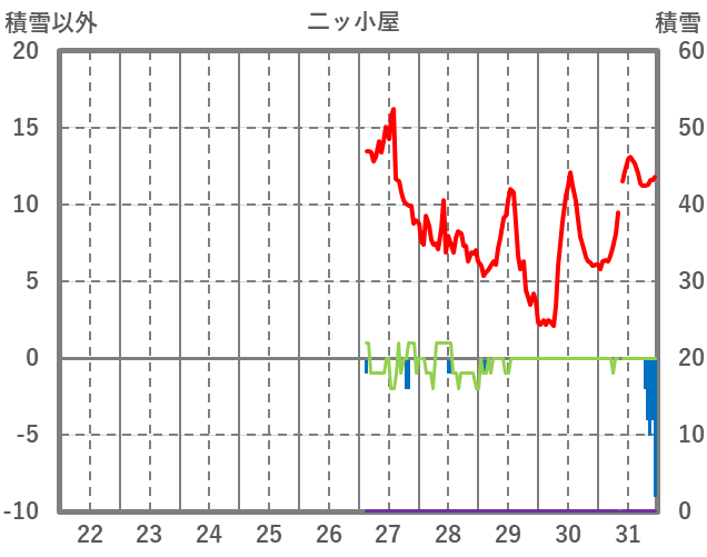 | 日 | 時 | 気温 | 降水 | 風向/風速 | 日照 | 積雪 | 降雪 |