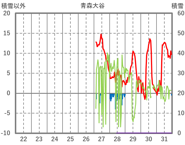 | 日 | 時 | 気温 | 降水 | 風向/風速 | 日照 | 積雪 | 降雪 |