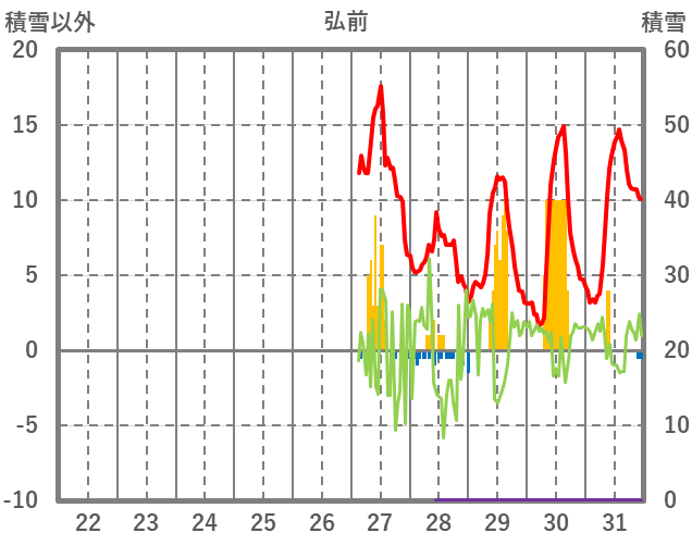 | 日 | 時 | 気温 | 降水 | 風向/風速 | 日照 | 積雪 | 降雪 |