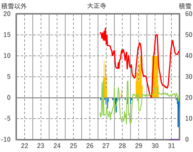 | 日 | 時 | 気温 | 降水 | 風向/風速 | 日照 | 積雪 | 降雪 |