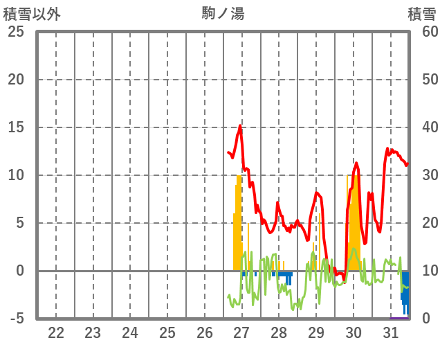 | 日 | 時 | 気温 | 降水 | 風向/風速 | 日照 | 積雪 | 降雪 |