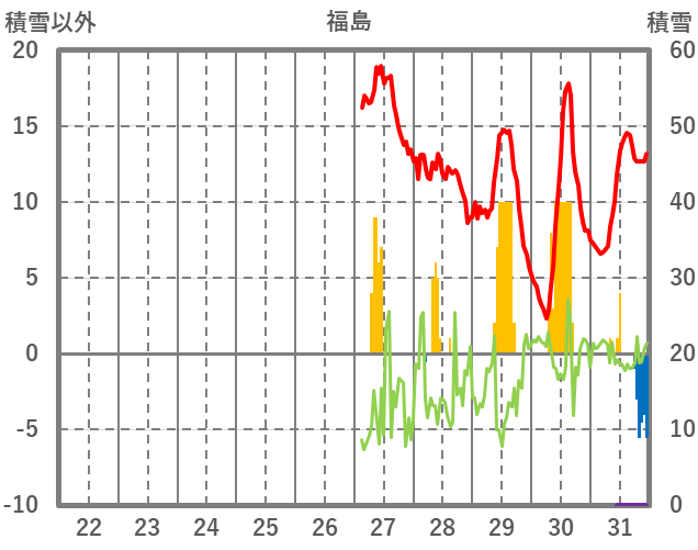 | 日 | 時 | 気温 | 降水 | 風向/風速 | 日照 | 積雪 | 降雪 |