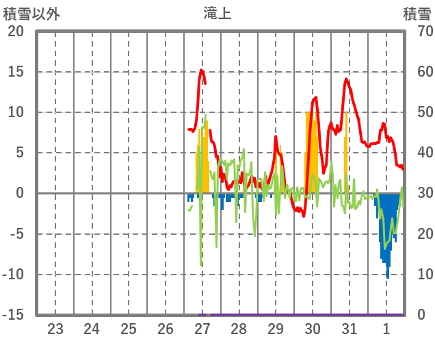 | 日 | 時 | 気温 | 降水 | 風向/風速 | 日照 | 積雪 | 降雪 |