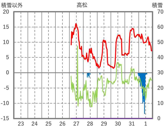 | 日 | 時 | 気温 | 降水 | 風向/風速 | 日照 | 積雪 | 降雪 |