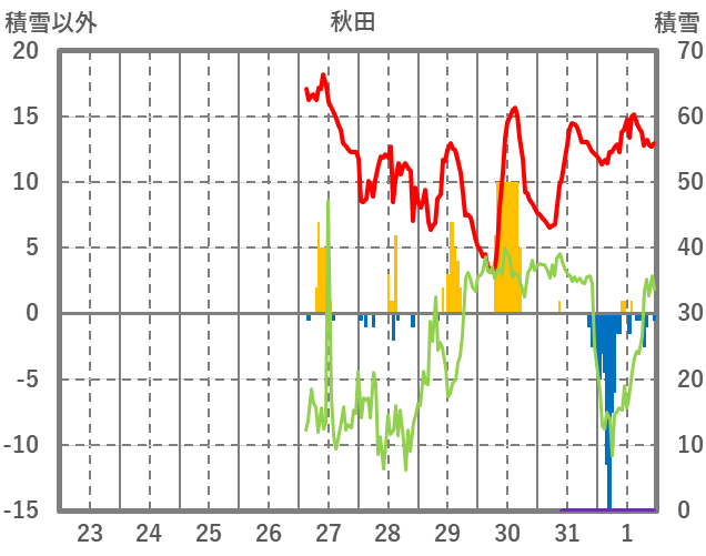 | 日 | 時 | 気温 | 降水 | 風向/風速 | 日照 | 積雪 | 降雪 |