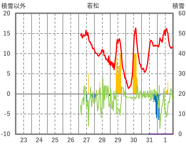 | 日 | 時 | 気温 | 降水 | 風向/風速 | 日照 | 積雪 | 降雪 |