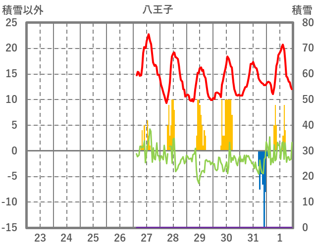 | 日 | 時 | 気温 | 降水 | 風向/風速 | 日照 | 積雪 | 降雪 |