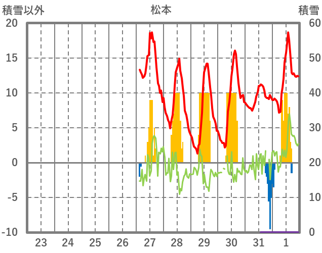 | 日 | 時 | 気温 | 降水 | 風向/風速 | 日照 | 積雪 | 降雪 |
