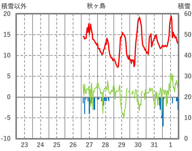 | 日 | 時 | 気温 | 降水 | 風向/風速 | 日照 | 積雪 | 降雪 |