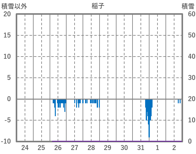 | 日 | 時 | 気温 | 降水 | 風向/風速 | 日照 | 積雪 | 降雪 |