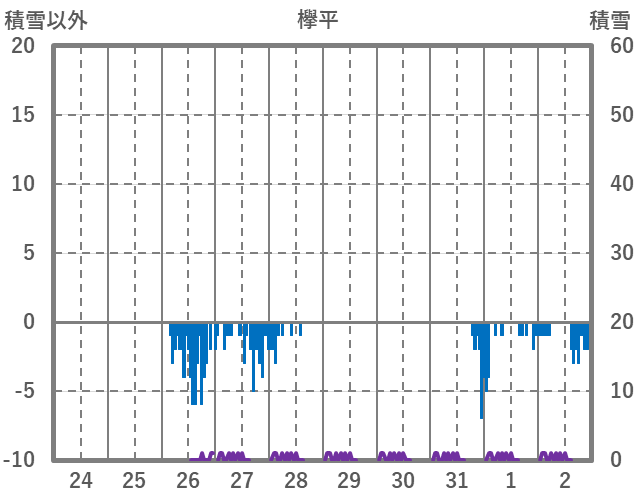| 日 | 時 | 気温 | 降水 | 風向/風速 | 日照 | 積雪 | 降雪 |