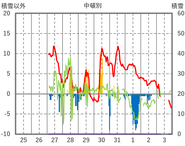 | 日 | 時 | 気温 | 降水 | 風向/風速 | 日照 | 積雪 | 降雪 |