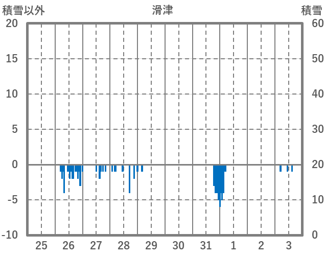 | 日 | 時 | 気温 | 降水 | 風向/風速 | 日照 | 積雪 | 降雪 |