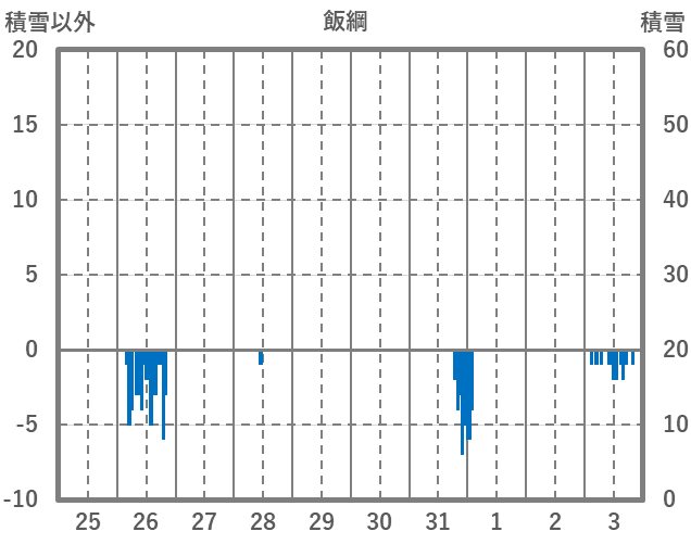 | 日 | 時 | 気温 | 降水 | 風向/風速 | 日照 | 積雪 | 降雪 |