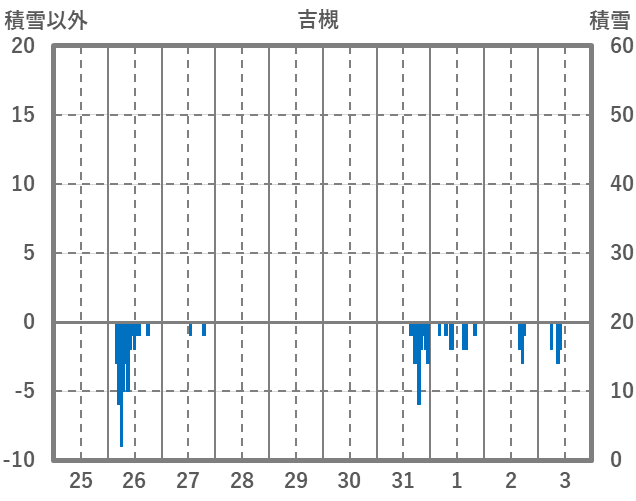 | 日 | 時 | 気温 | 降水 | 風向/風速 | 日照 | 積雪 | 降雪 |