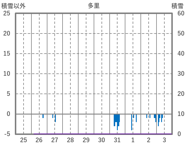 | 日 | 時 | 気温 | 降水 | 風向/風速 | 日照 | 積雪 | 降雪 |