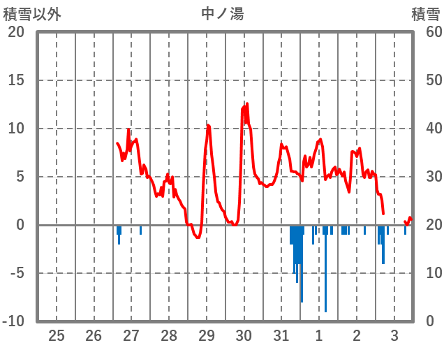 | 日 | 時 | 気温 | 降水 | 風向/風速 | 日照 | 積雪 | 降雪 |