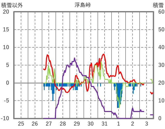 | 日 | 時 | 気温 | 降水 | 風向/風速 | 日照 | 積雪 | 降雪 |