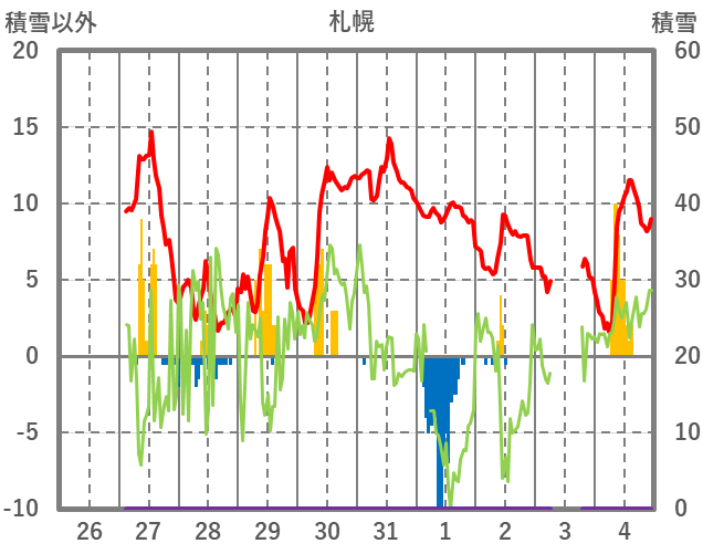 | 日 | 時 | 気温 | 降水 | 風向/風速 | 日照 | 積雪 | 降雪 |