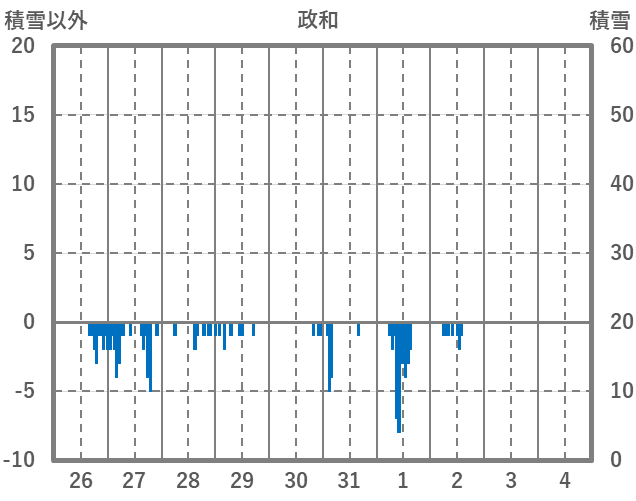| 日 | 時 | 気温 | 降水 | 風向/風速 | 日照 | 積雪 | 降雪 |