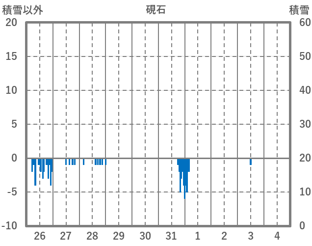 | 日 | 時 | 気温 | 降水 | 風向/風速 | 日照 | 積雪 | 降雪 |