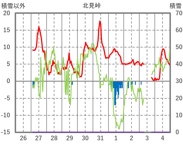 | 日 | 時 | 気温 | 降水 | 風向/風速 | 日照 | 積雪 | 降雪 |