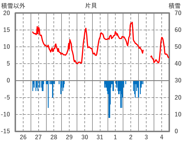 | 日 | 時 | 気温 | 降水 | 風向/風速 | 日照 | 積雪 | 降雪 |