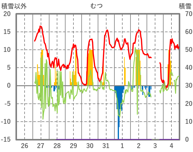 | 日 | 時 | 気温 | 降水 | 風向/風速 | 日照 | 積雪 | 降雪 |