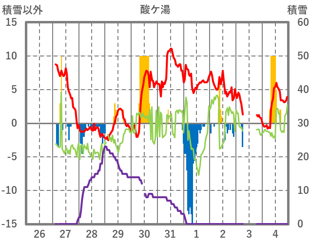 | 日 | 時 | 気温 | 降水 | 風向/風速 | 日照 | 積雪 | 降雪 |