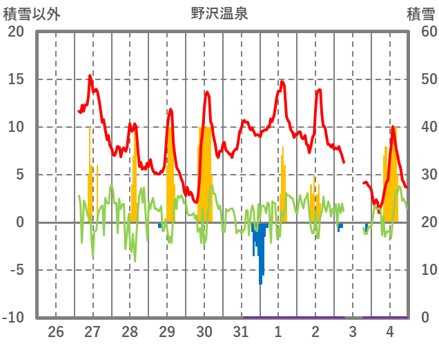 | 日 | 時 | 気温 | 降水 | 風向/風速 | 日照 | 積雪 | 降雪 |