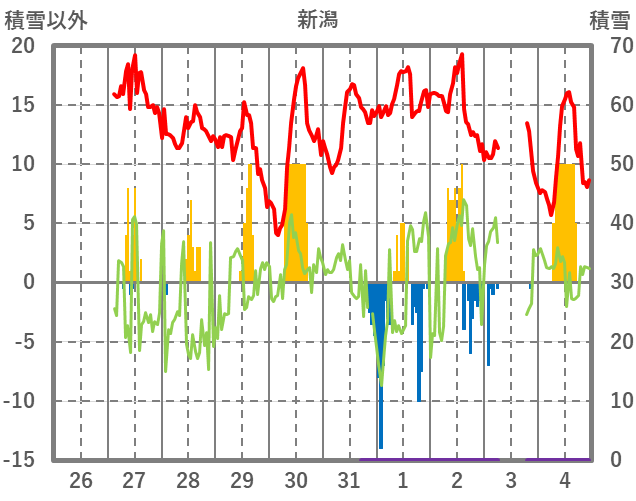 | 日 | 時 | 気温 | 降水 | 風向/風速 | 日照 | 積雪 | 降雪 |