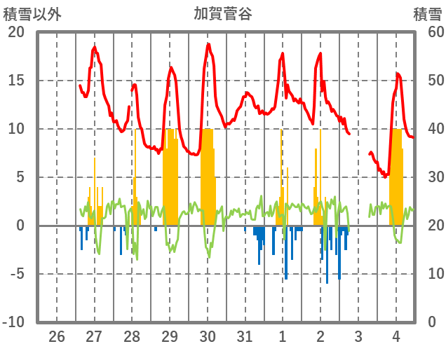 | 日 | 時 | 気温 | 降水 | 風向/風速 | 日照 | 積雪 | 降雪 |